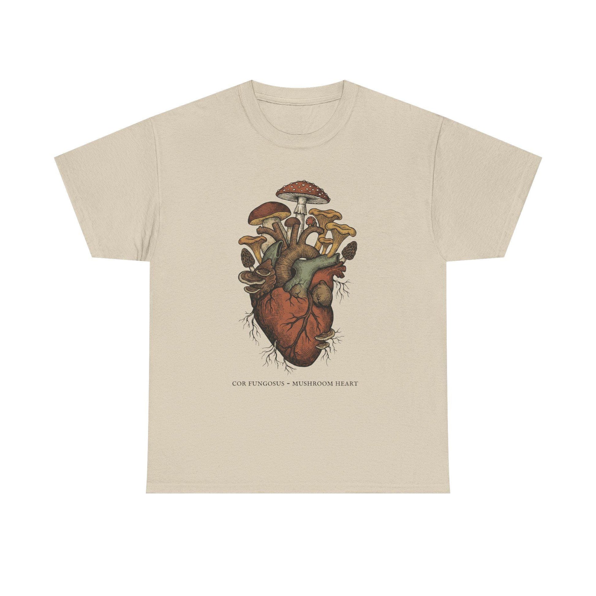 Anatomisches Herz-T-Shirt mit Pilzen | Botanische Pilzillustration, Zauberpilz-Shirt, Geschenk für Gärtner, Mykologie-Natur-Shirt