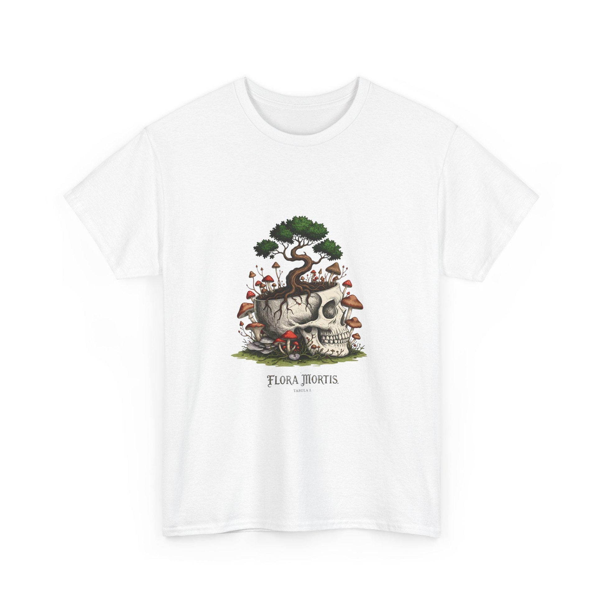 Totenkopf-Bonsai-Pilz-T-Shirt, dunkles botanisches Grafik-T-Shirt, Gothic-Natur-Shirt, Hexenwald-Totenkopf-Top, Unisex-Baumwoll-T-Shirt, Zauberpilze