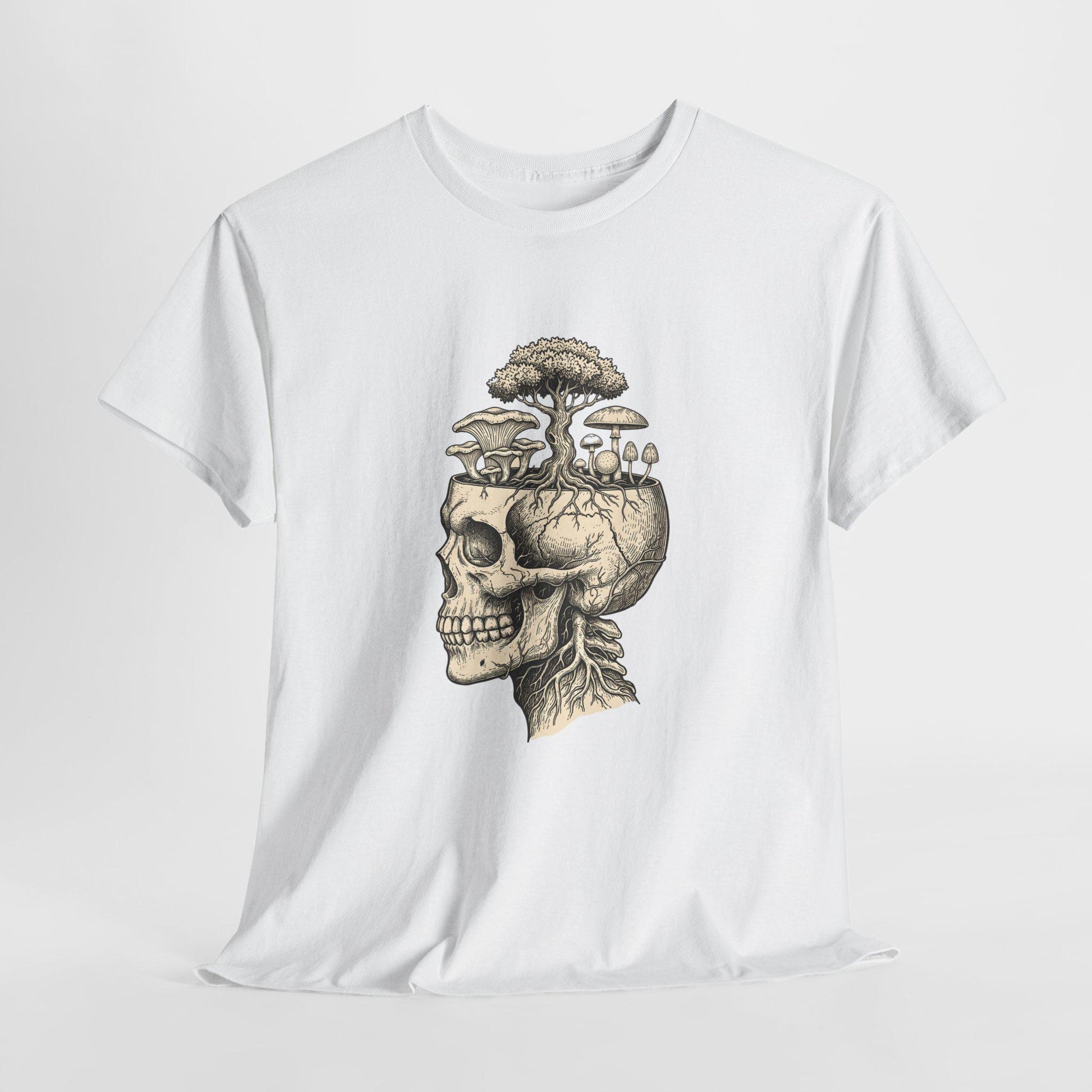 Totenkopf-Pilz-T-Shirt | Gothic-T-Shirt mit botanischem Grafikprint | Dunkles Natur-Shirt | Hexen-Totenkopf-Top | Unisex-Baumwoll-T-Shirt | Zauberpilze | Mykologie